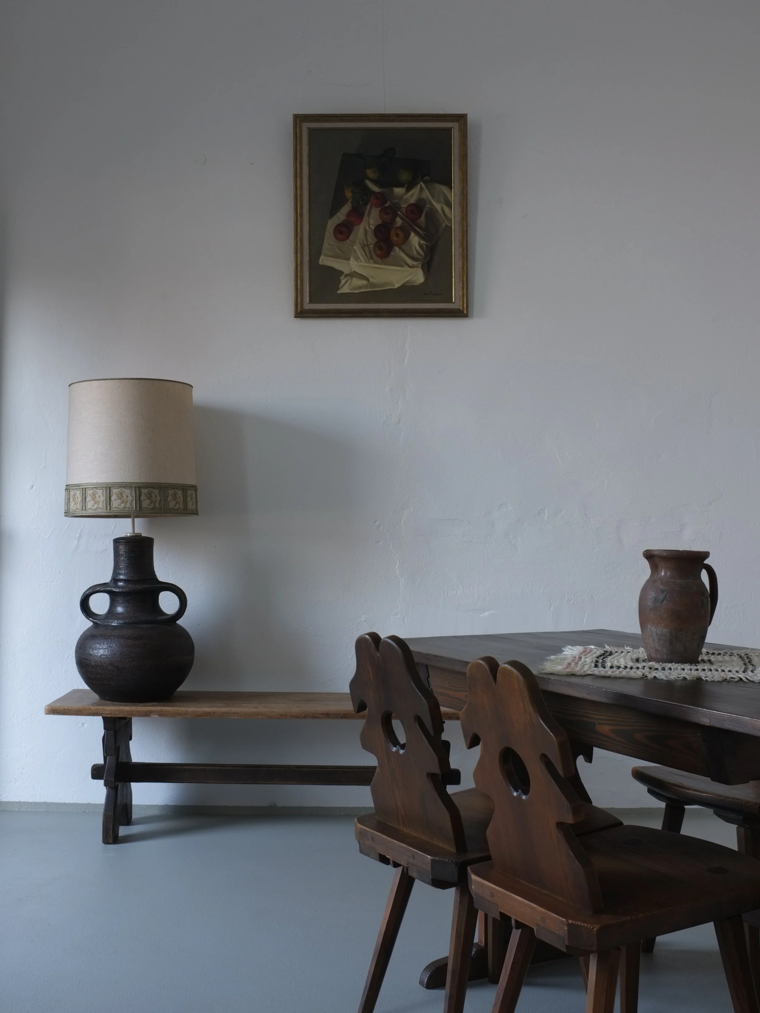 Condition: Good vintage condition according to its age, some rust on the white metal detail(shown in the photo). Fully functional original wiring, but it's better to rewire before use.