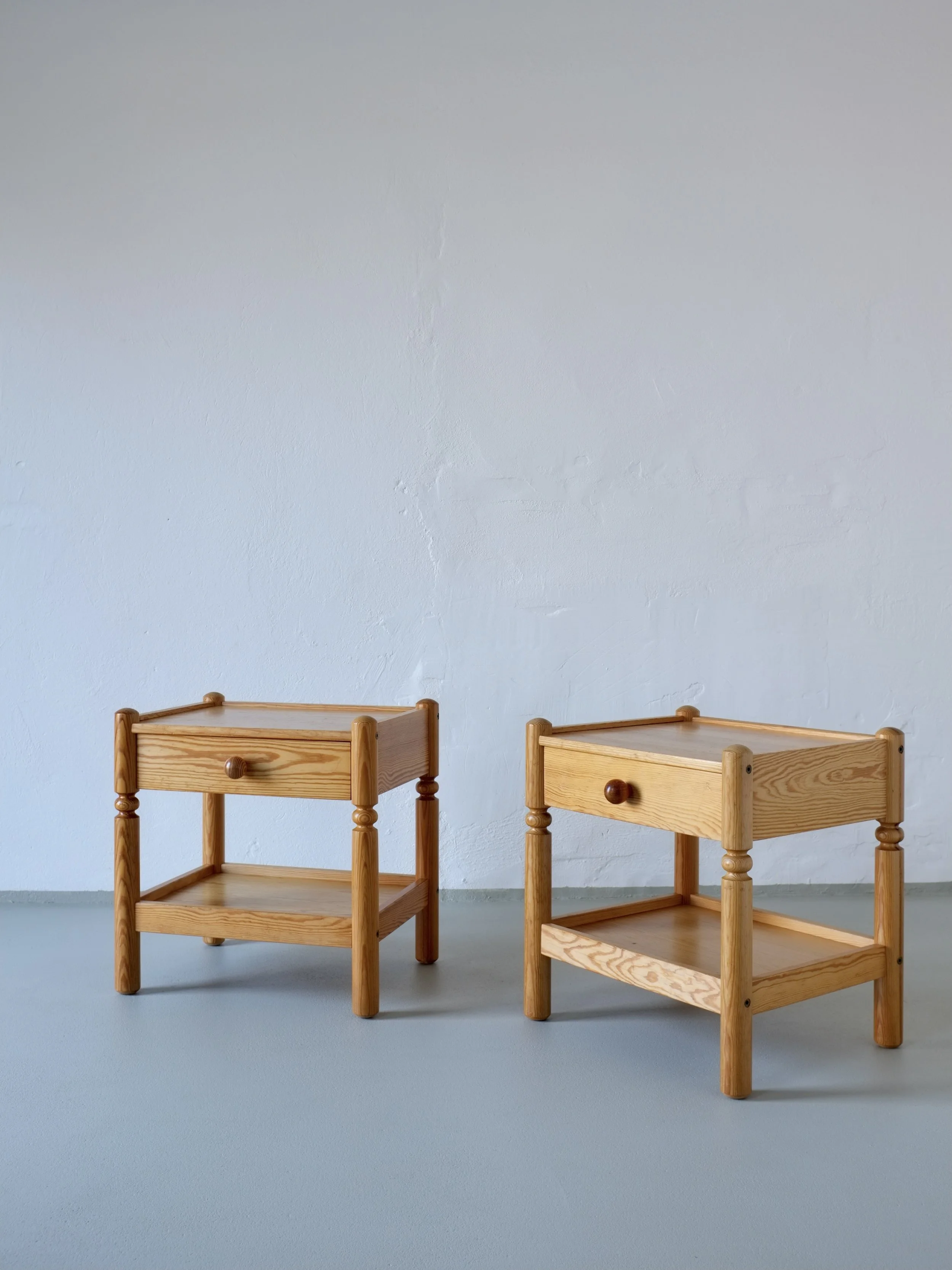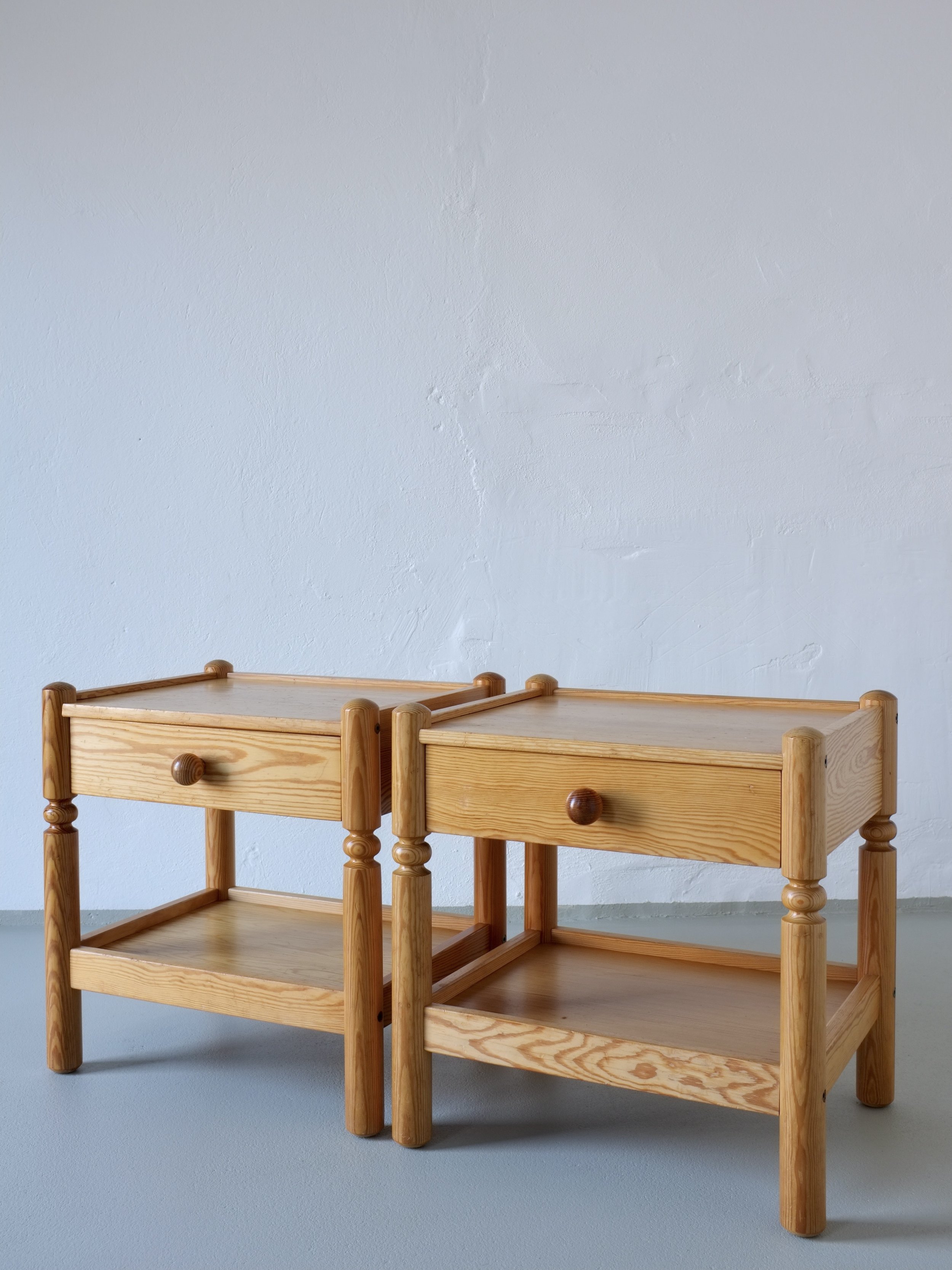 Set of two solid pine night stands with minimalist look in the manner of Uno & Östen Kristiansson.