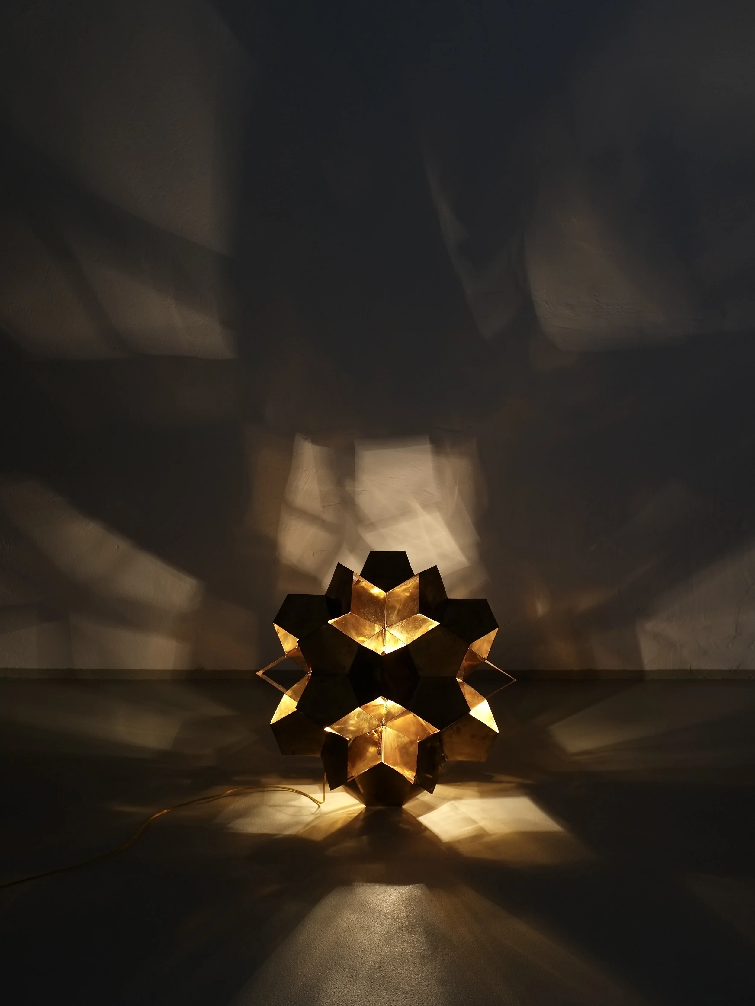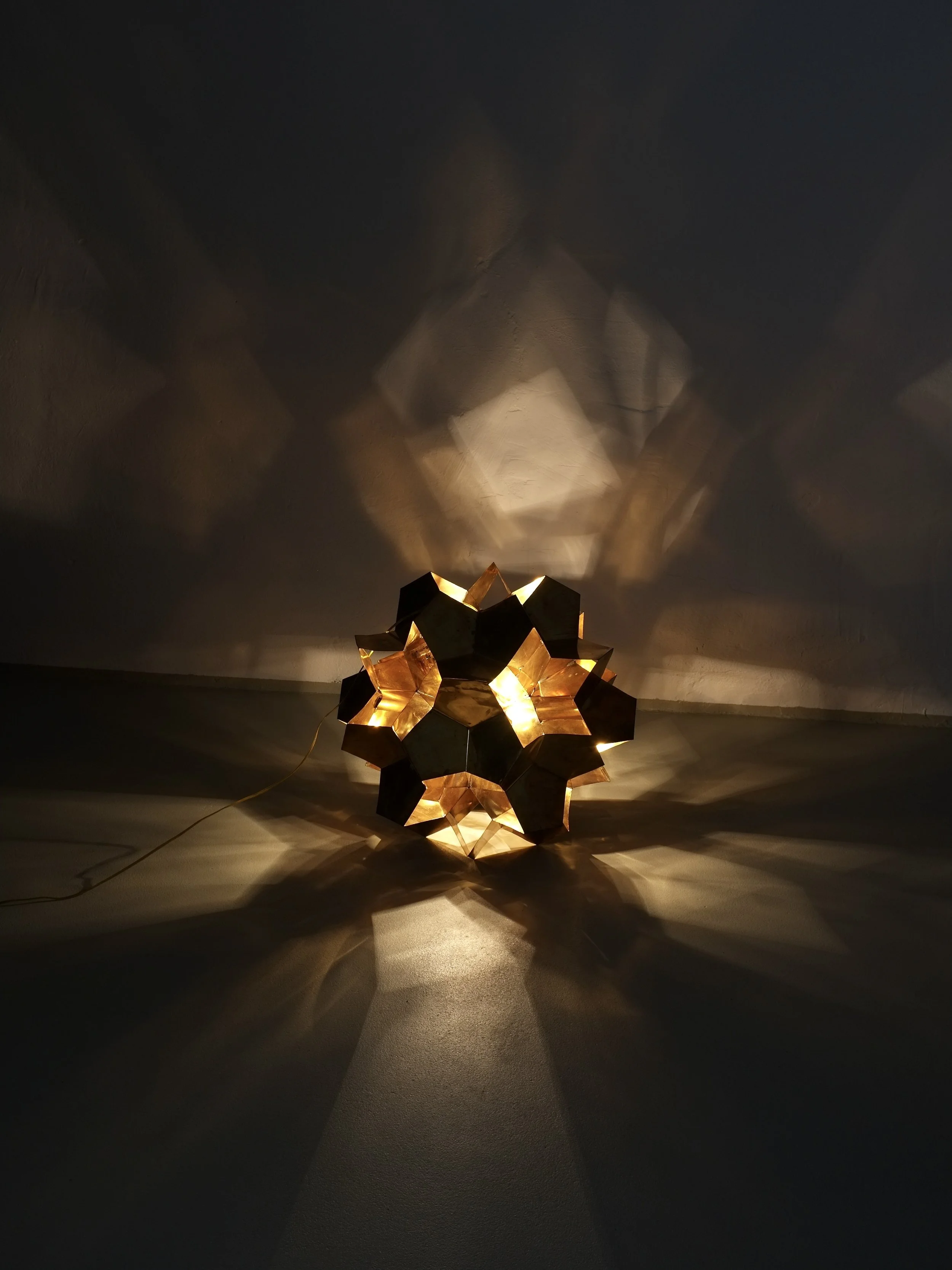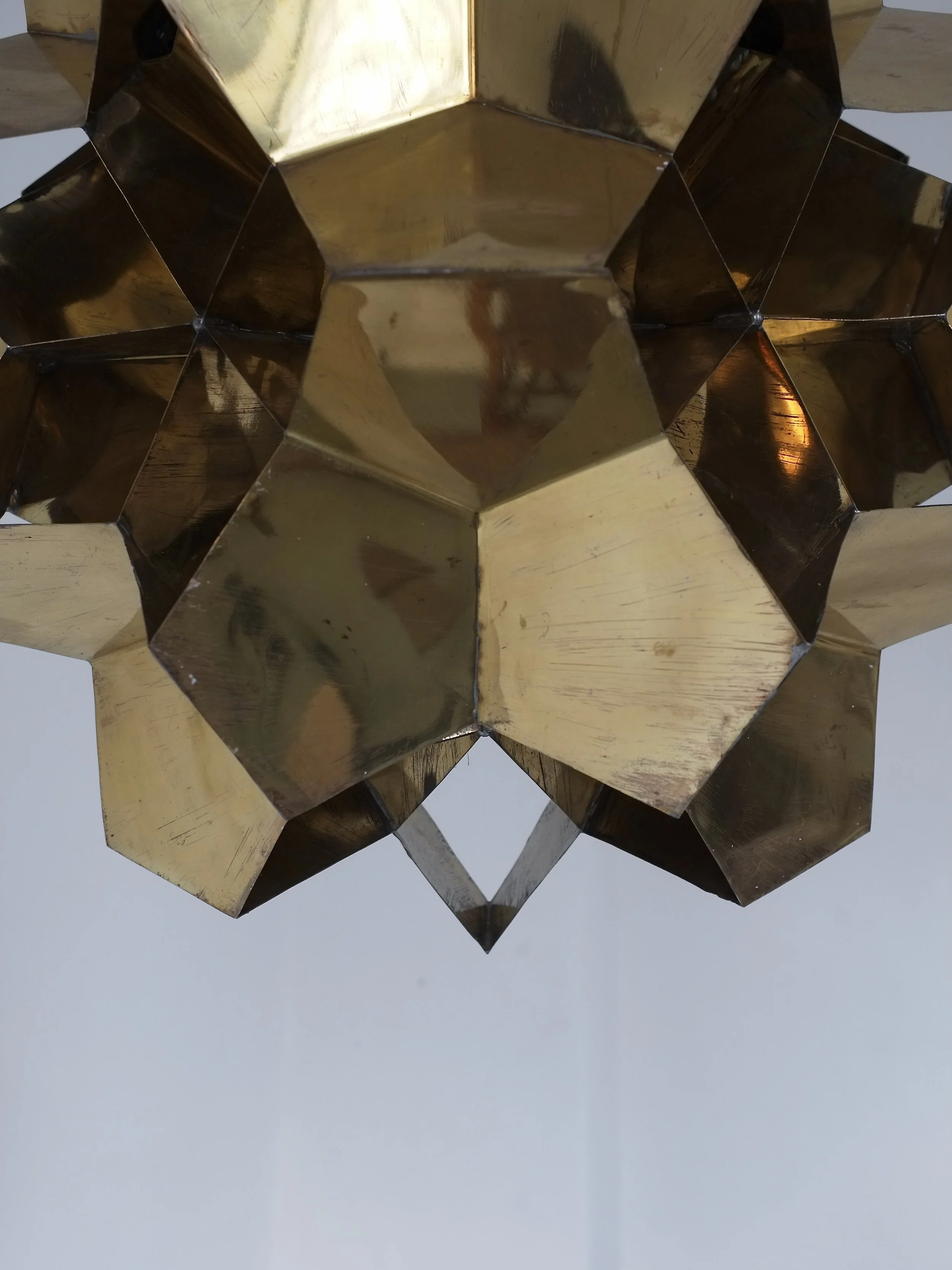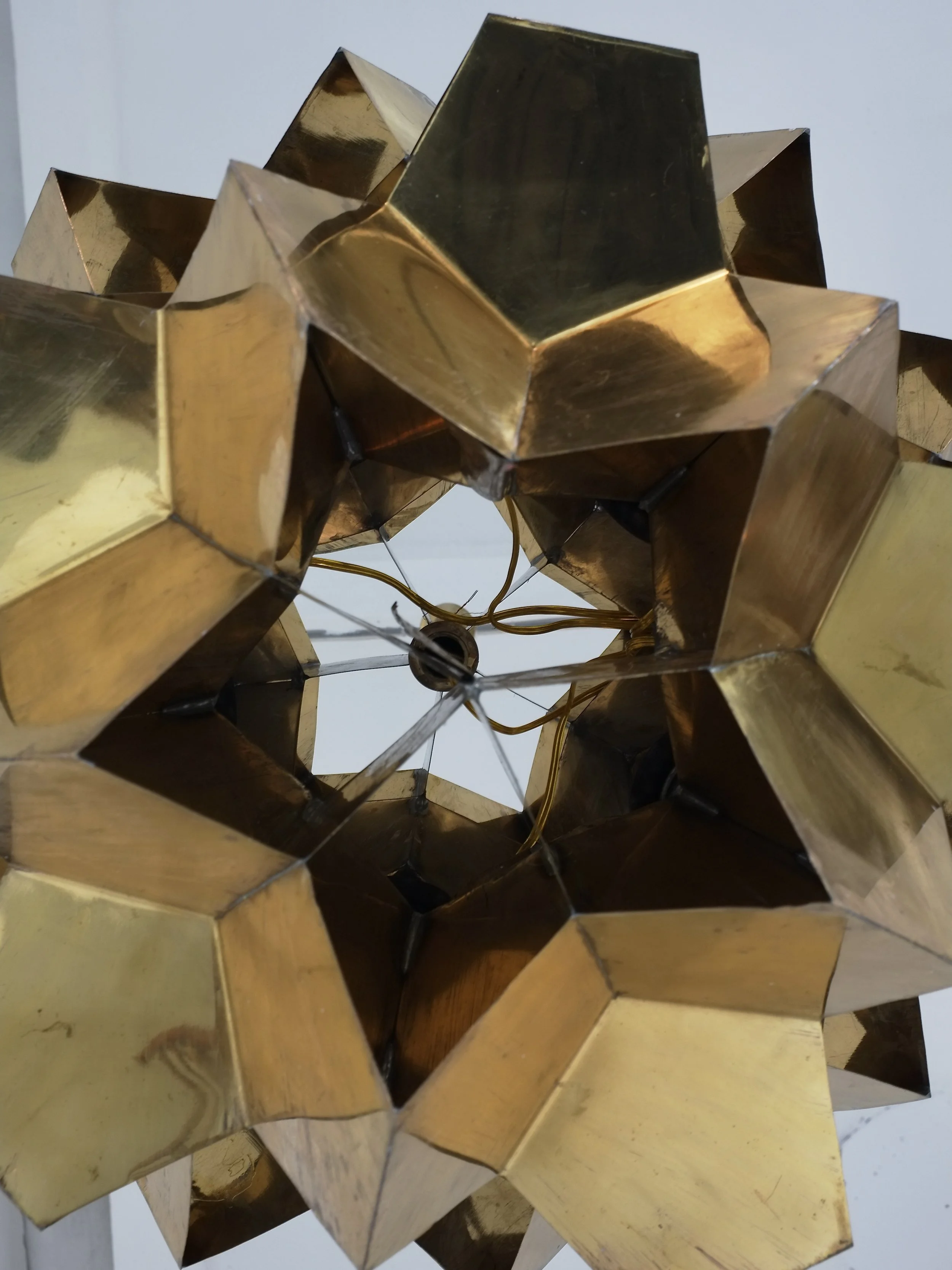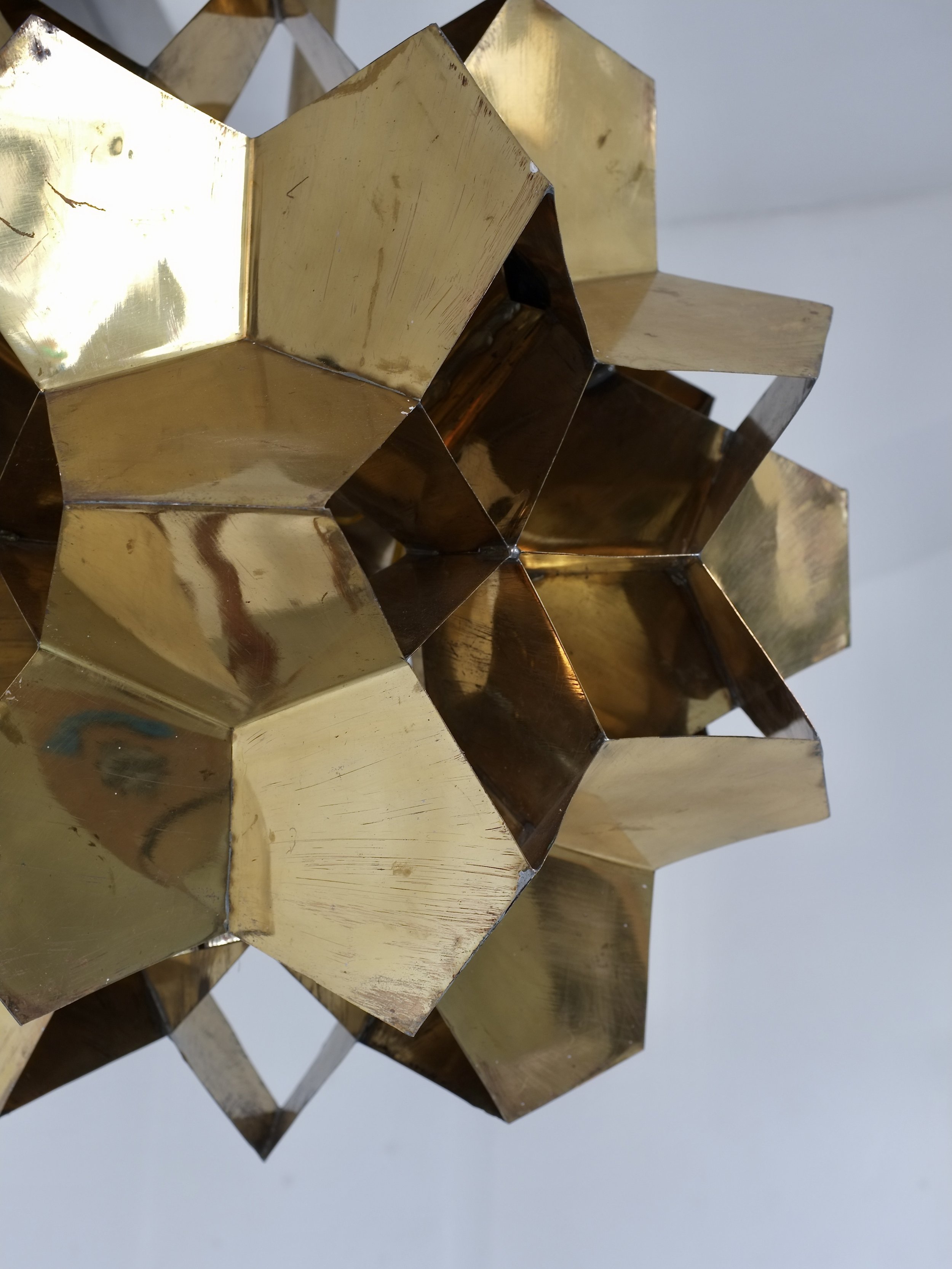 Large Brutalist Brass Origami Chandelier | Latvia | 1970s