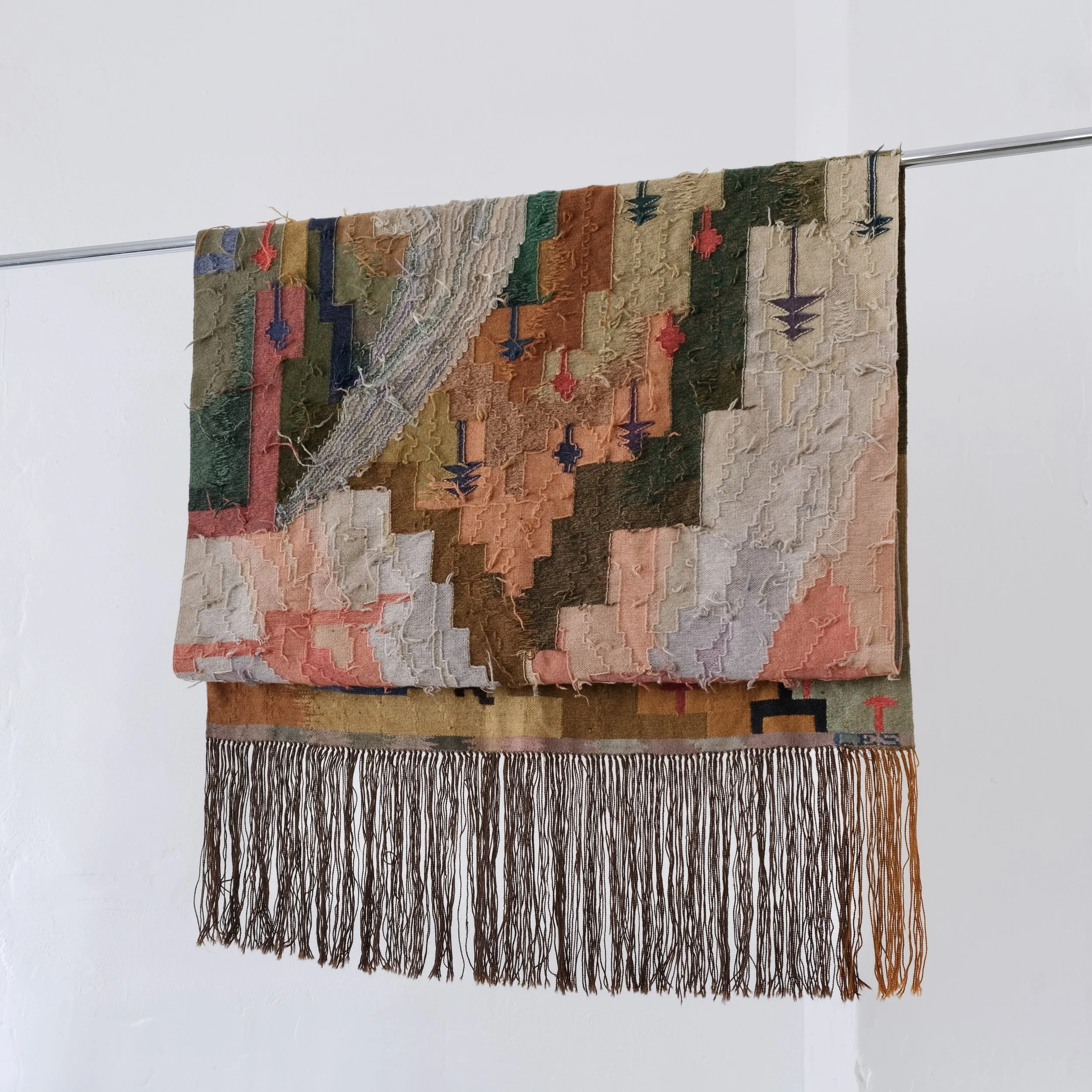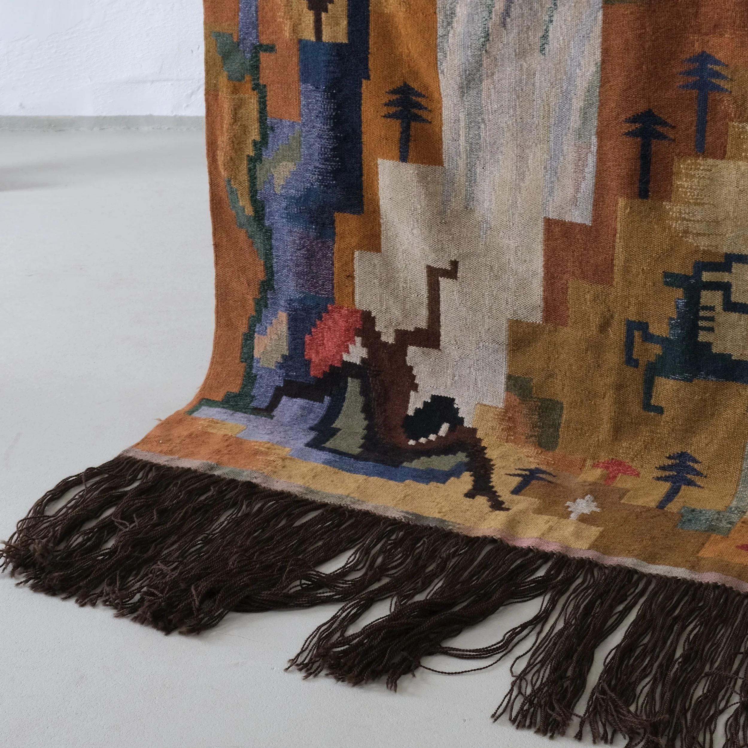 Vintage flat-woven wool tapestry by Swedish designer Carl Edvin Svensson.