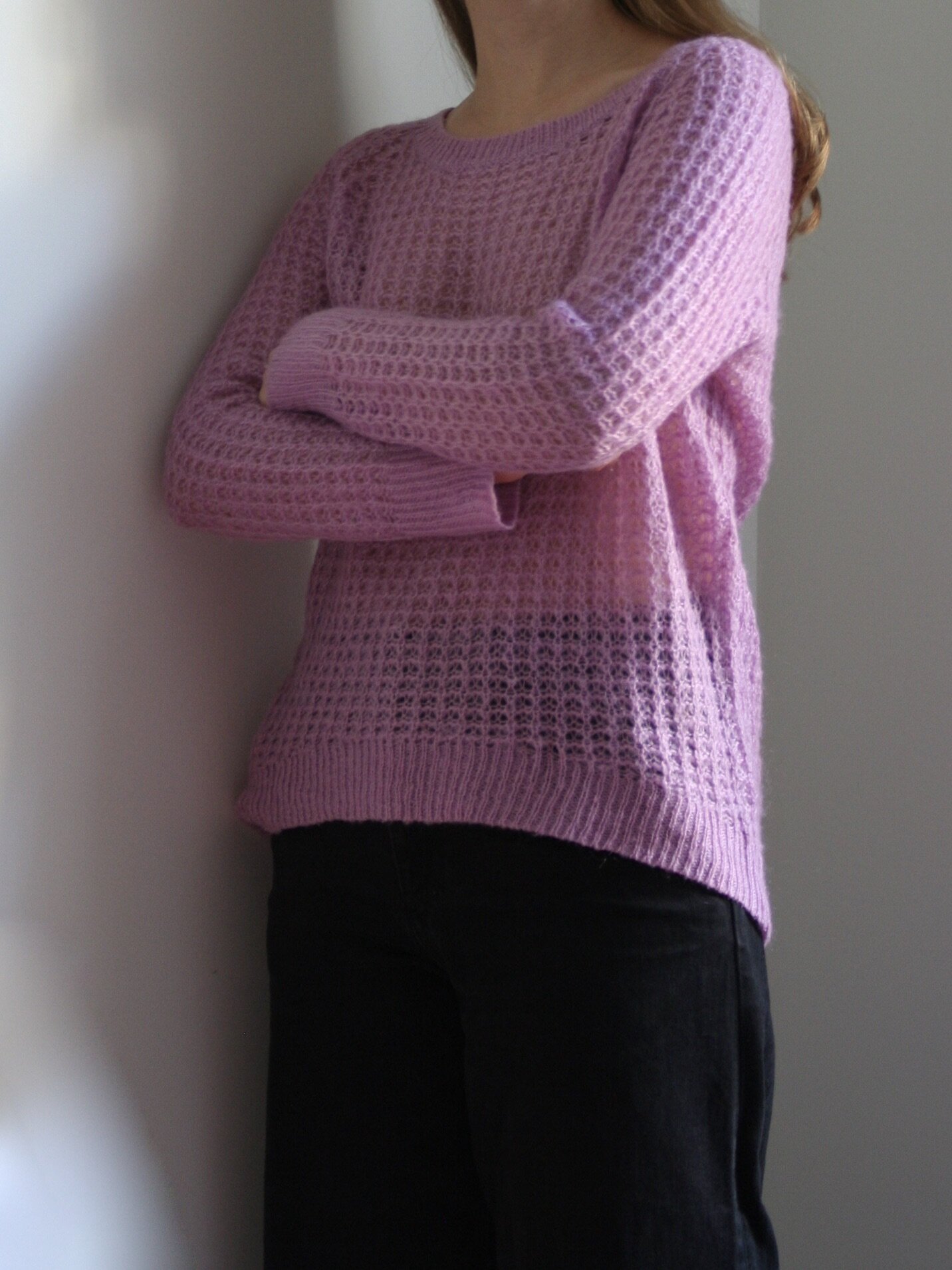 Vintage hand-knitted raglan pullover made of soft and lightweight mohair in a beautiful lavender shade.